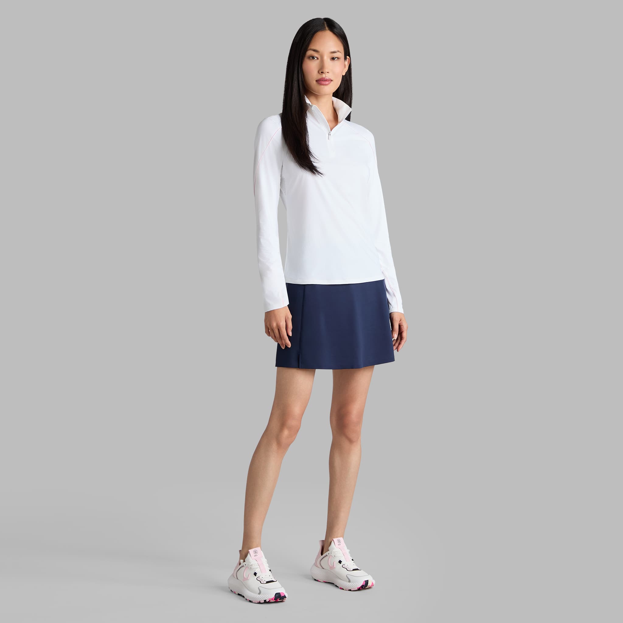 G/Fore Women's Silky Tech Nylon 1/4 Zip Sun Shield Golf Pullover - Snow/Blush