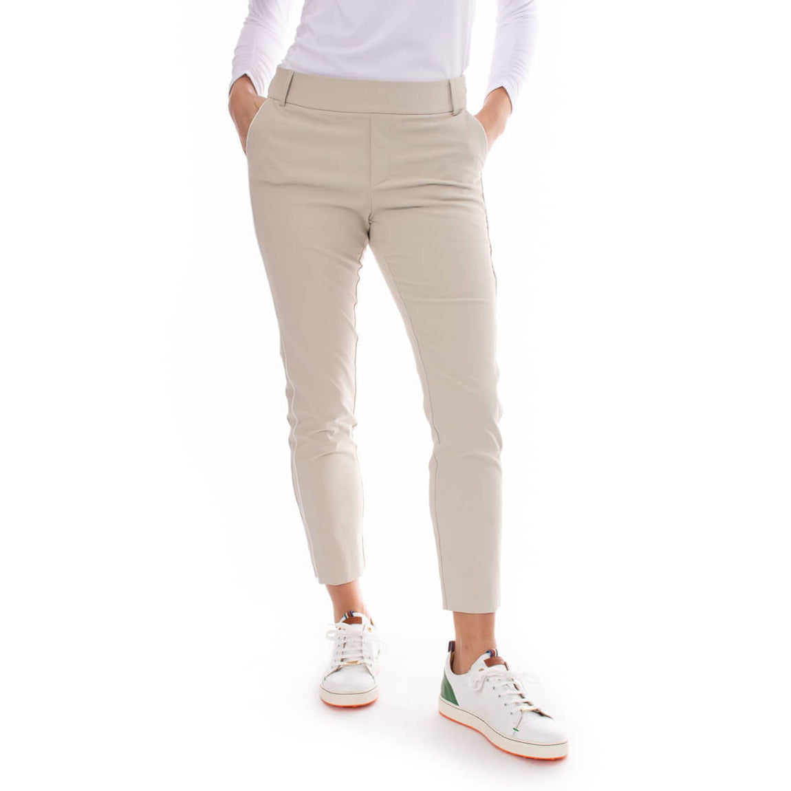Golftini Stretch-Knöchel-Golfhose für Damen – Khaki/Weiß