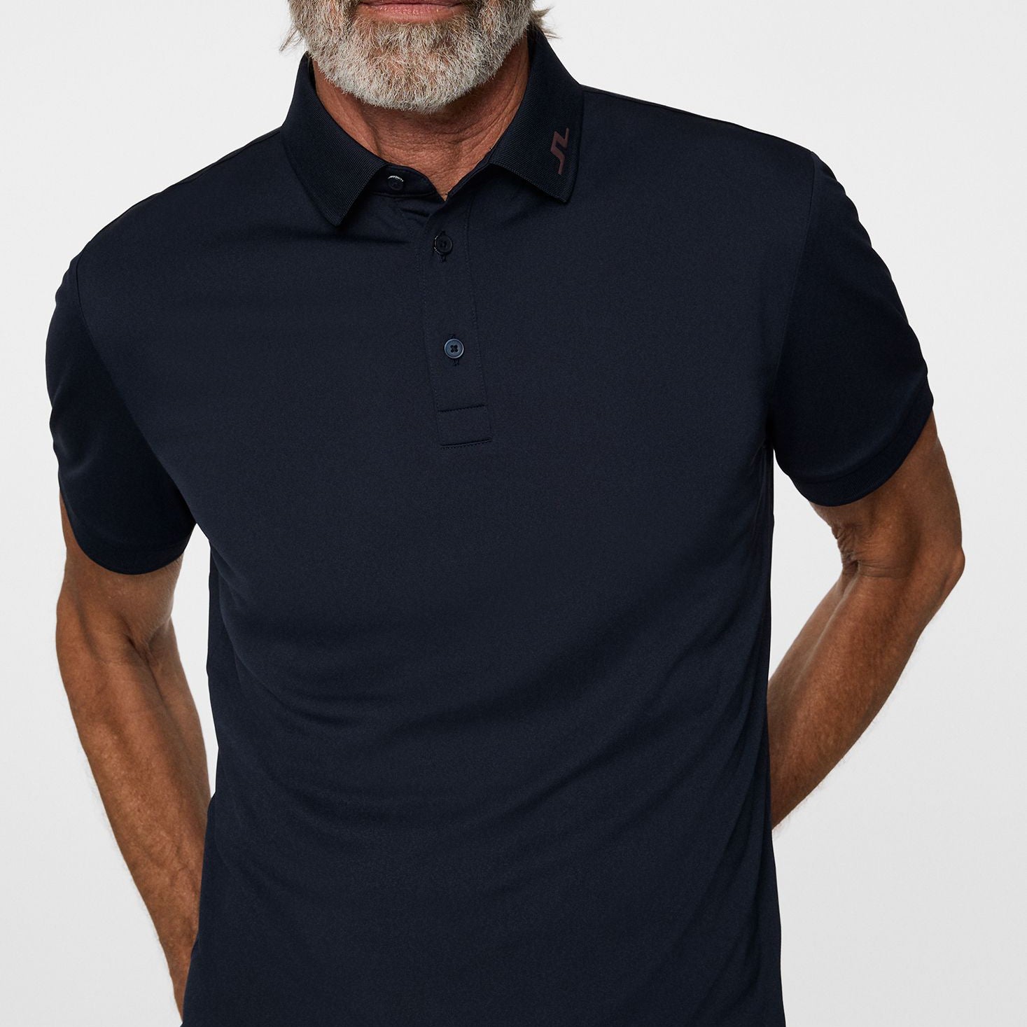 Signature Branding: Das gestickte Brückenlogo am Kragen fügt einen raffinierten und erkennbaren J.Lindeberg -Touch hinzu.
