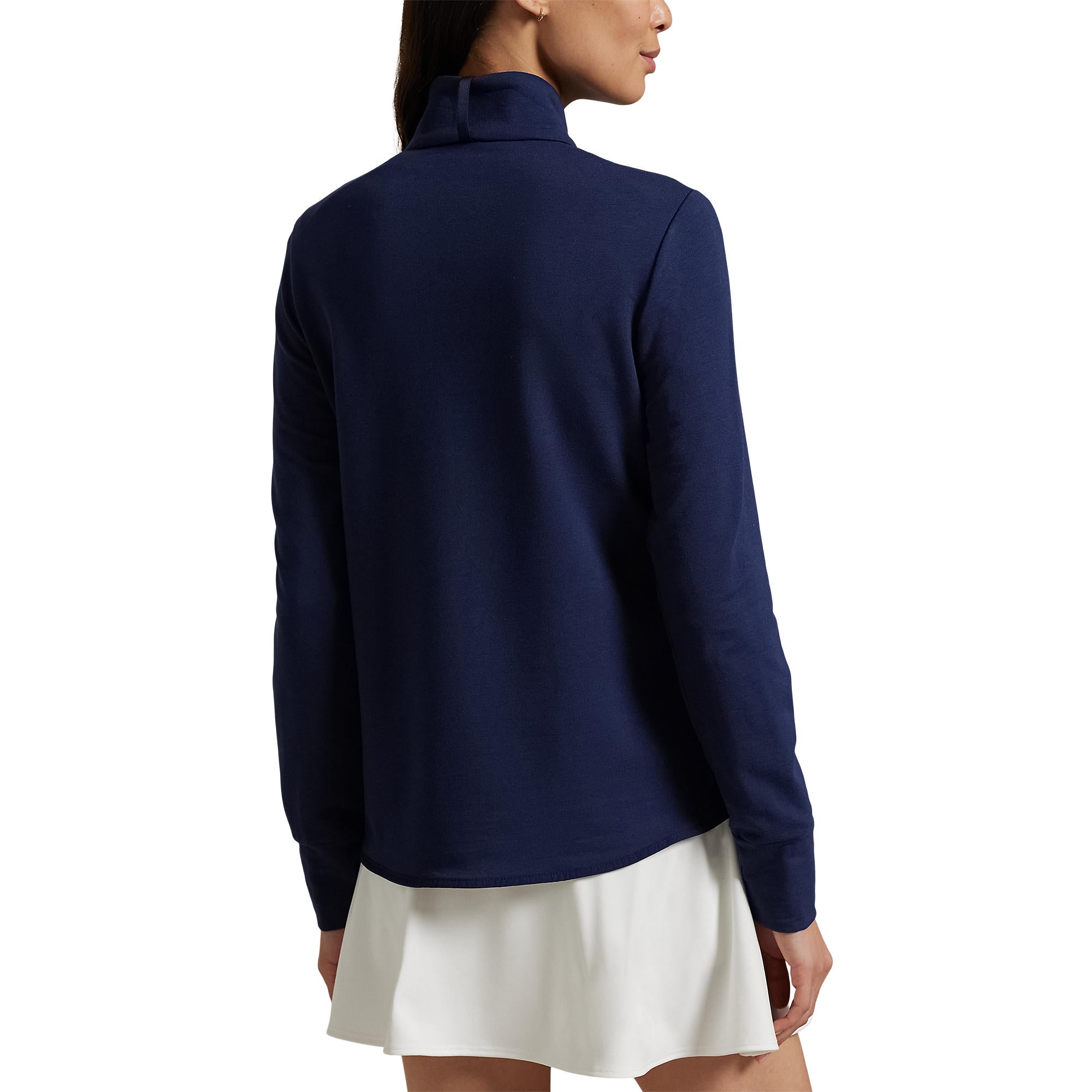 Nachdenkliche Details: Lange Ärmel mit genähten Manschetten und Daumenlöchern halten die Ärmel an Ort und Stelle und fügen während kühlerer Runden zusätzliche Wärme hinzu.