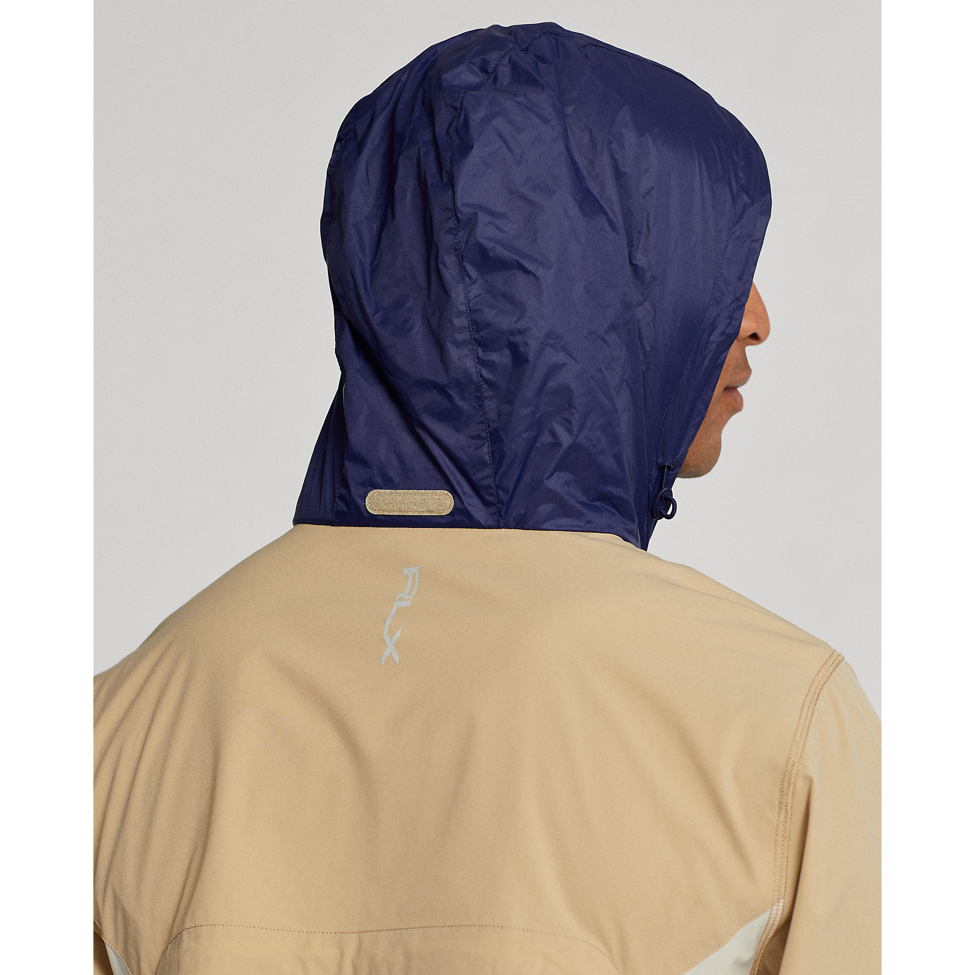 "RLX" -Logo, gedruckt in der rechten Manschette, im Mittelpunkt und im packbaren Taschen.