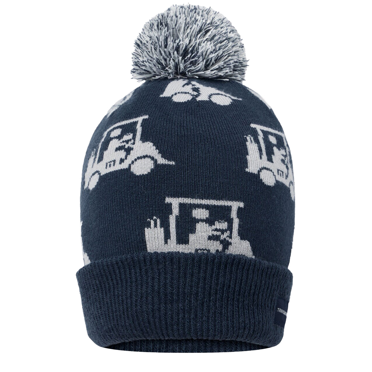 Cozy, Playful, and Unmistakably TravisMathew Stay warm and stylish with the MAPES Beanie. Crafted from soft woven fabric, it features an all-over print of our iconic golf cart graphic and a playful pom top, adding personality to every cold-weather look.